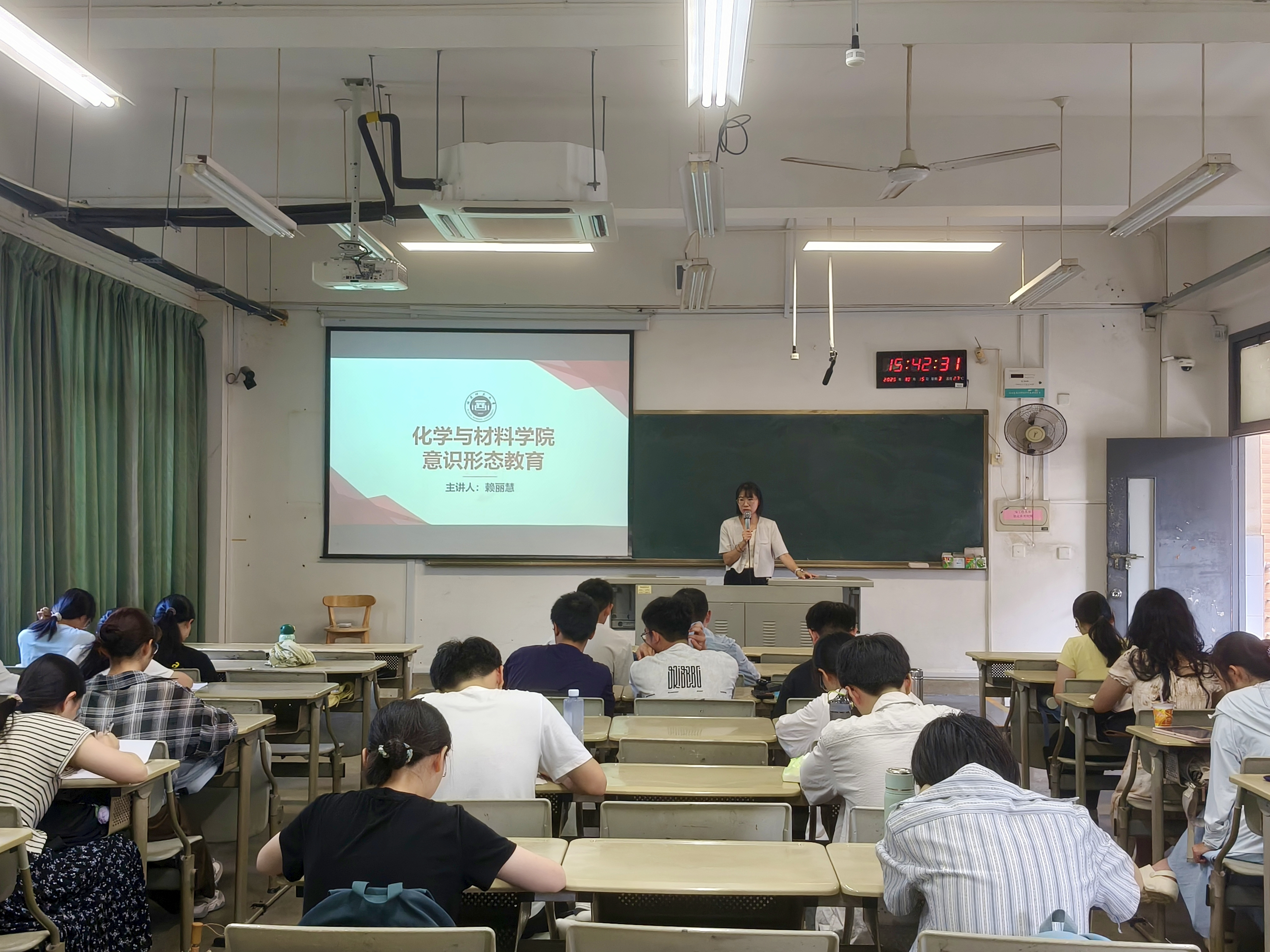10月15日下午,化学与材料学院开展“筑牢思想防线,凝聚思想共识”主题教育。辅导员赖丽慧主讲,复合化生专业学生参与。