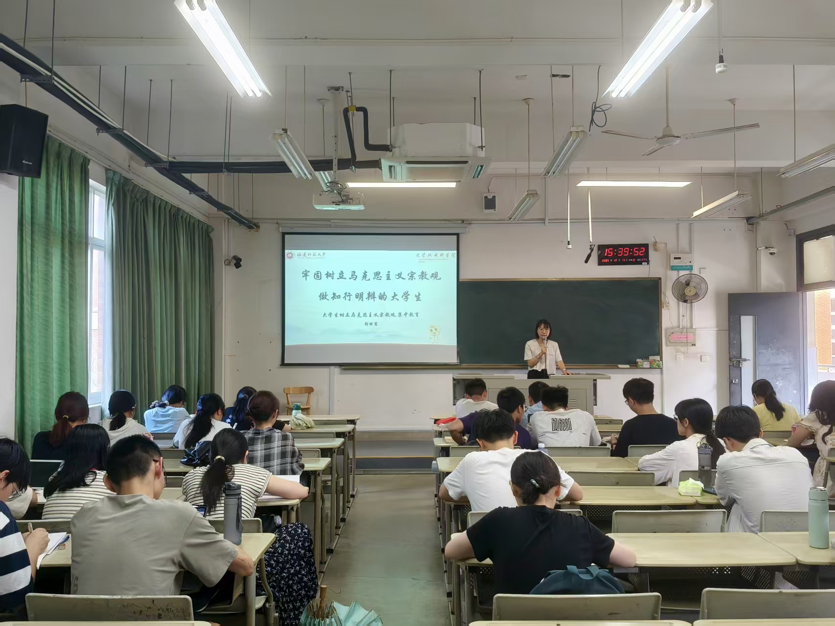 赖老师通过典型案例生动讲解了党和国家的宗教政策及其相关法律法规,强调了作为新时代青年树立正确马克思主义宗教观的重要性。通过剖析校园内外典型案例,深入解读当前意识形态领域的复杂形势与潜在风险。她强调,意识形态安全是国家安全的重要组成部分,高校是意识形态工作的前沿阵地,大家要在科研学习、社会实践中始终保持政治清醒,坚决抵制错误思潮,守住思想防线。此外,要自觉维护班级安全稳定,营造积极健康、团结向上的班级氛围。