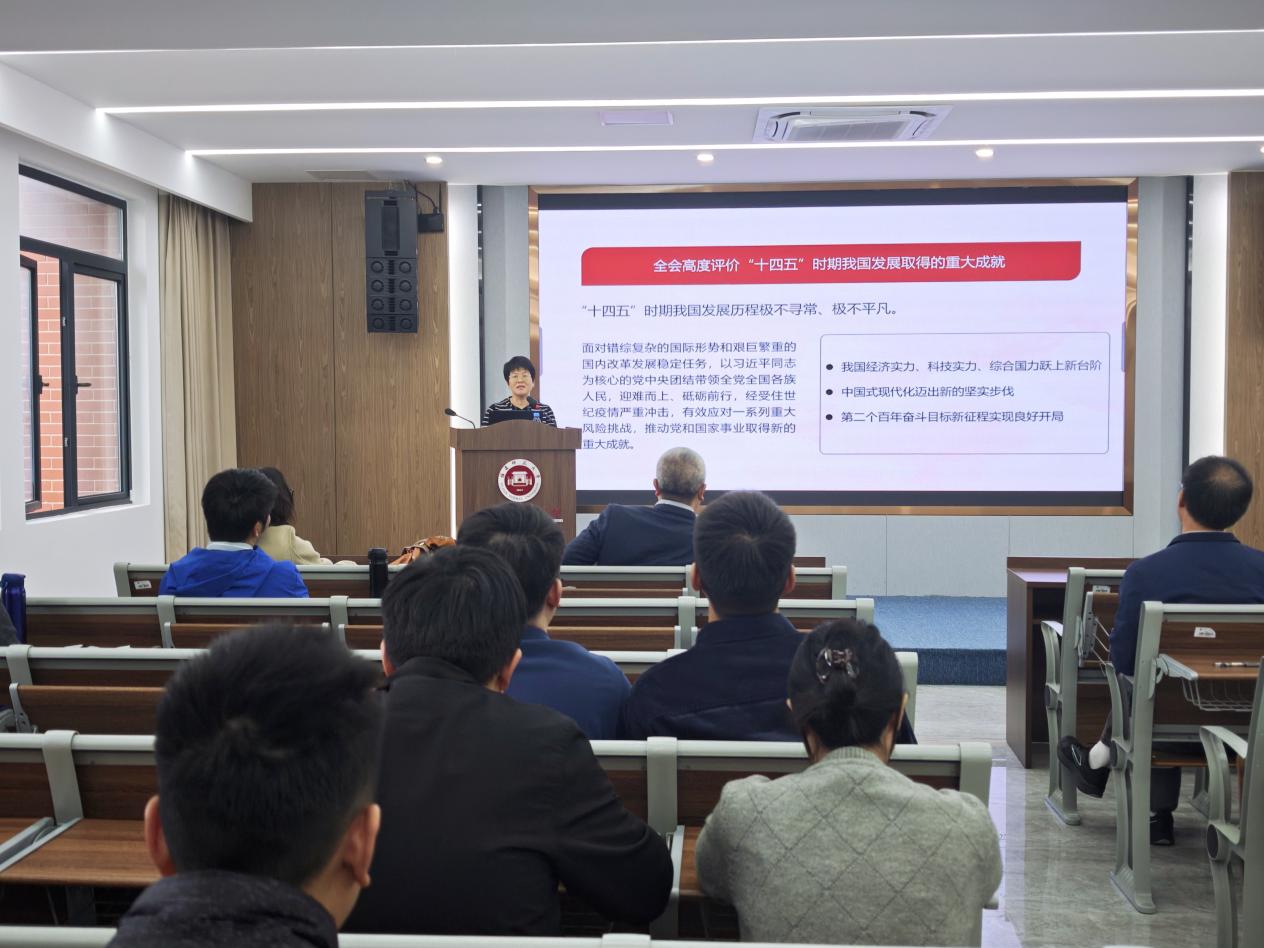 12月19日,我院学习贯彻党的二十届四中全会精神宣讲报告会在科研楼303举行。校学习贯彻党的二十届四中全会精神宣讲团成员、协和学院院长杨林香教授作专题辅导报告。报告会由院党委副书记(主持工作)张娴主持,全院教职工参加学习。