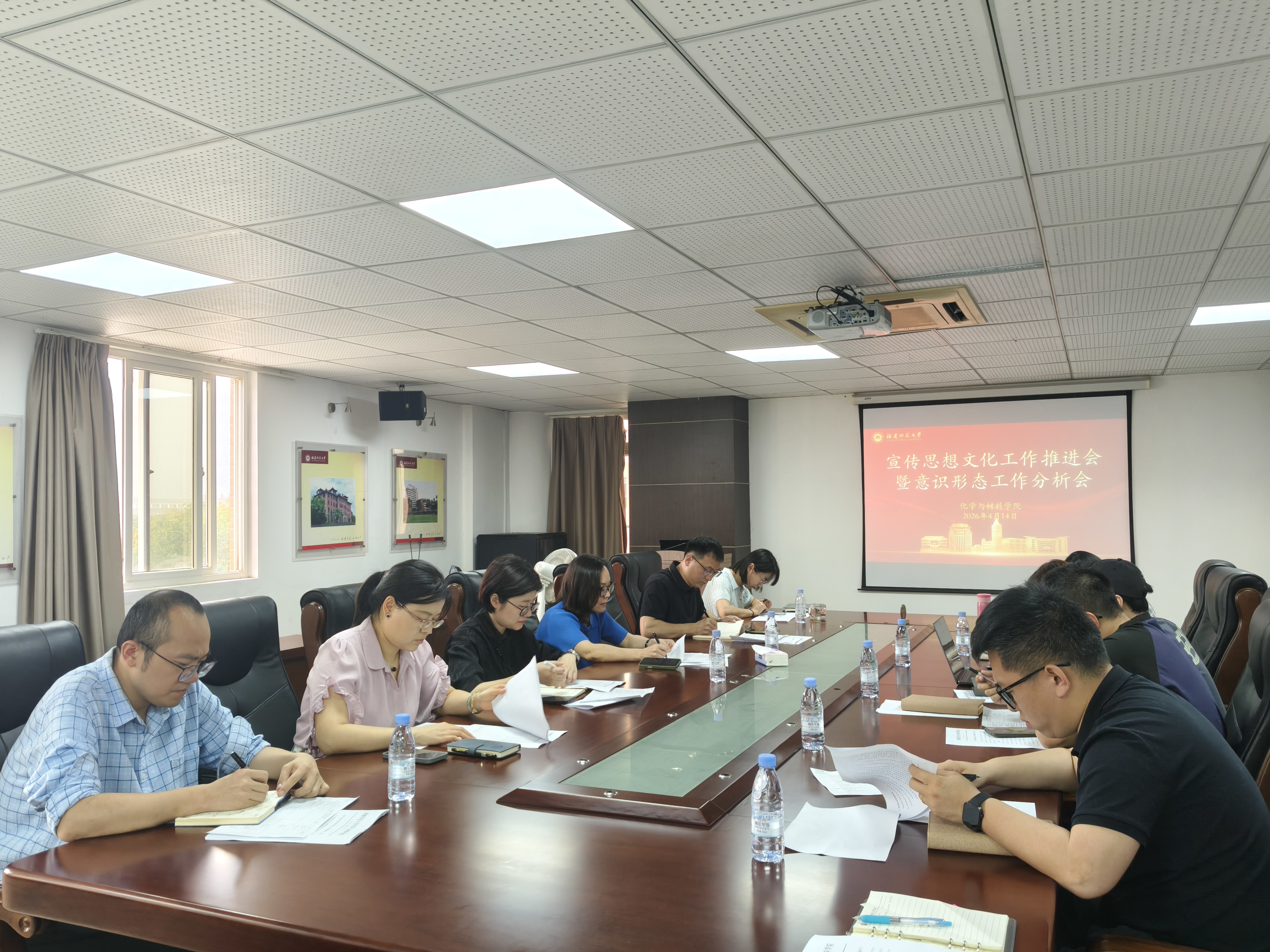 会议要求,一要深挖细查风险隐患,压实主体责任。坚决克服“重形式轻实效”倾向,强化责任清单,结合学科专业特点和师生认知规律,对教材选用、学术讲座、社团活动、实验室文化等阵地开展拉网式排查。二要提档升级新媒体运营,严守审核关口。严格执行“三审三校”制度,规范学院官方网站、微信公众号等新媒体平台内容发布流程。明确责任人,加强对学生一站式社区宣传栏、海报栏等“微阵地”的内容把关。三要前瞻谋划重要节点,做强正面宣传。紧扣关键时点,提前制定宣传方案,统筹内宣外宣、网上网下资源,讲好化材故事。