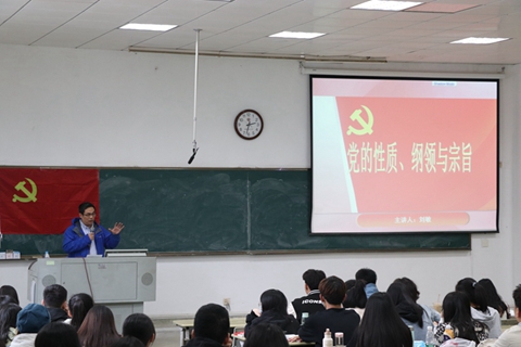 为提高入党积极分子思想觉悟,丰富积极分子对党史的认识,促进党的精神的传播,13日下午,化学与材料学院于笃行1-215举行 “党的性质、纲领与宗旨”主题党课,本次党课由院党委刘敏副书记主讲。
