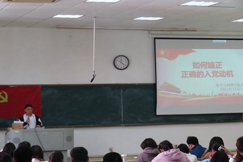 为了让同学们更加深刻地了解党的性质与宗旨,促进党的伟大精神的传递,增强同学们的责任感与使命感,2021年11月14日上午,化学与材料学院“如何端正入党动机”主题交流讨论会于笃行1-215进行。