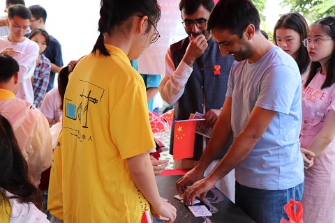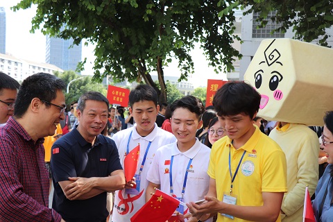 随处可见的五星红旗,彰显的是师大人对祖国的爱;暖阳下的小黄衣,体现的是化学人之间珍贵的情。学院吉祥物苯宝宝以及各年级辅导员的加入,更是拉近了师生距离,点燃了全场氛围。化材师生其乐融融,携手合“家”欢。