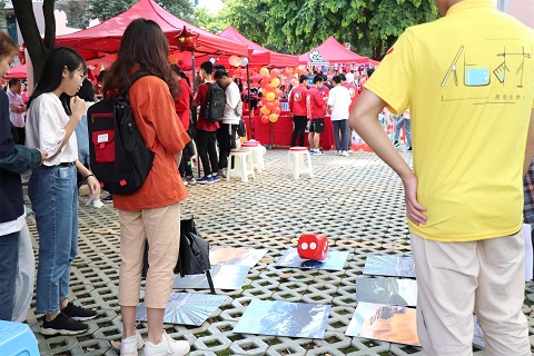 红旗飘扬,红歌回旋,人头攒动,欢声起伏,无不体现了浓厚的节日氛围。化材学院的帐篷下也早已有人摩拳擦掌,时刻准备开始游戏。在“我爱这土地”游戏中,化材人通过掷骰子进行答题,在问答过程中,同学们学习了化学小知识、祖国发展史及福师大的校史,收获了知识与快乐;“指尖化学”为同学们准备了可以拼接成分子结构的“原子”模型,这既是对大家化学结构知识储备的考验,也是对大家动手能力的锻炼;“化学烽火台”环节同学们需在最短时间翻转消除能够形成沉淀物质的卡牌,这一游戏同时考验了同学的脑力与手速。整个活动中,学子们都依次排队游戏,热闹而不失秩序。人群中不时爆发出欢笑声、欢呼声,源源不断的掌声为秋日注入了新的活力。