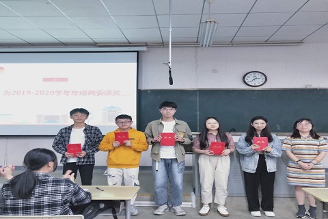 新旧更替,百感交集。在大会的开始,为表彰上一届两委的辛勤付出,感激并肯定他们的工作成绩,辅导员李珍老师为2019-2020学年年级两委颁发荣誉证书并合影留念。这一支从无到有的两委队伍,在过去一年与化材学院2019级同学共同进步并取得优异成绩。李导表示,希望他们与新一届两委做好工作对接,在今后的学习、工作中不忘初心、砥砺前行。