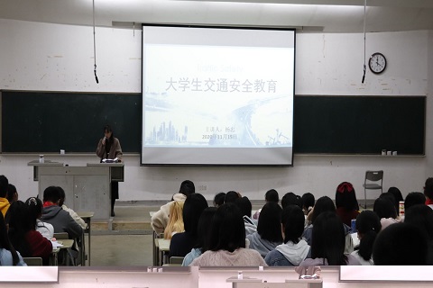 本次讲座中,杨忠老师首先从校内外交通安全隐患与交通事故处理等方面对交通安全知识进行了普及。同时,杨老师通过列举闯红灯、横穿马路、低头玩手机等常见的引发交通问题的现象,结合几个典型的交通事故案例为同学们敲响安全警钟,强调在座的每一位同学应当熟知交通安全知识,增强自我防范意识。