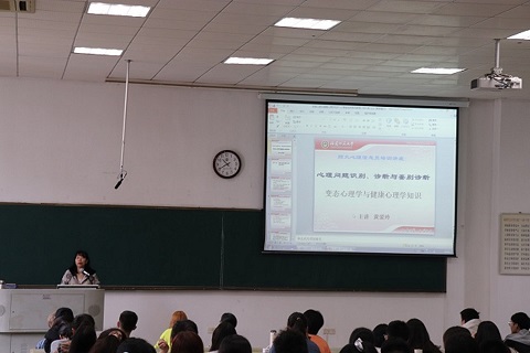 首先,黄老师从具体事例出发向心理委员们叙述了“朋辈心理辅导”的重要性。她指出,心理委员是传播心理健康知识的宣传员,是连接学校与同学的桥梁和润滑剂,是学校心理健康教育工作的一支重要力量,对同学们的心理健康起着重要作用。其次,黄老师以一个金字塔式简明清晰地讲述了疑似精神疾病程度的划分,用颇有张力的语调将心理健康与不健康进行判断和分类,让心理委员们正确分辨身边人的心理问题状况,并认识了评证心理疾病的测试方法。最后,黄老师重点讲述了引起心理问题的几点因素,再将所有内容进行了归纳总结。她希望心理委员们能够有强烈的责任感,做好评判报告工作,以心理老师的身份在生活中正确引导同学面对心理问题,同时注重自身心理健康状况。