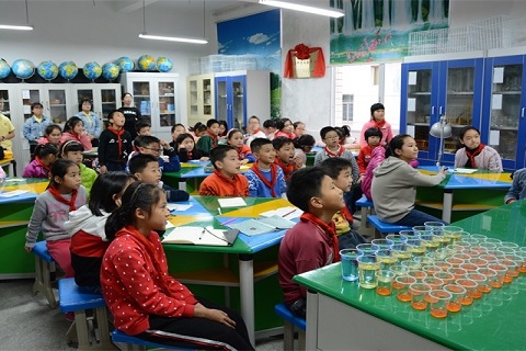 化学人准备了两个实验:鸡蛋悬浮和瓶子里的彩虹。志愿者们早早来到浦口小学实验室,有条不紊地准备实验,制作实验材料,分配药品,布置现场。