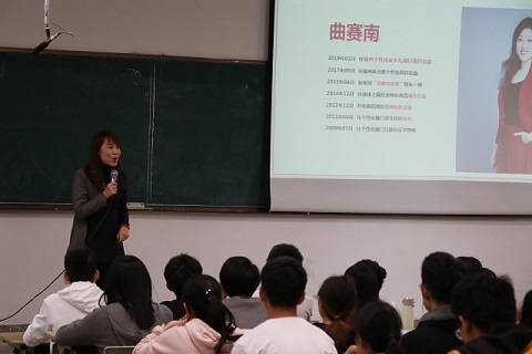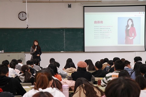 首先,曲赛南女士以自身为典例,介绍自己的履历和在快乐学习教育机构十余年的工作经历。曲赛南女士十分肯定自己的职业选择,认为在快乐学习集团中她获得了个人价值的充分实现和个人能力的明显提升。她提及,在当今物质丰腴的时代,个人的追求无非是赢得尊重与自由,引起了在场同学的广泛共鸣。